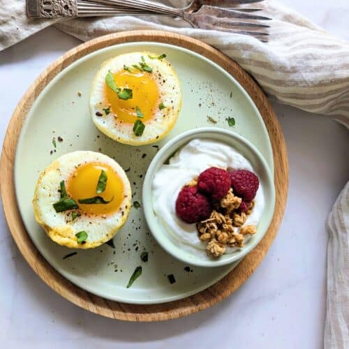 And yes, you can freeze these baked egg cups, which makes them super handy for busy weeknights. I would recommend baking them until the yolks are fully set if you plan to freeze them, as softer yolks don’t hold up as well. Allow to cool completely, then store in a freezer-safe container or bag. When you’re ready to eat, simply reheat until hot.